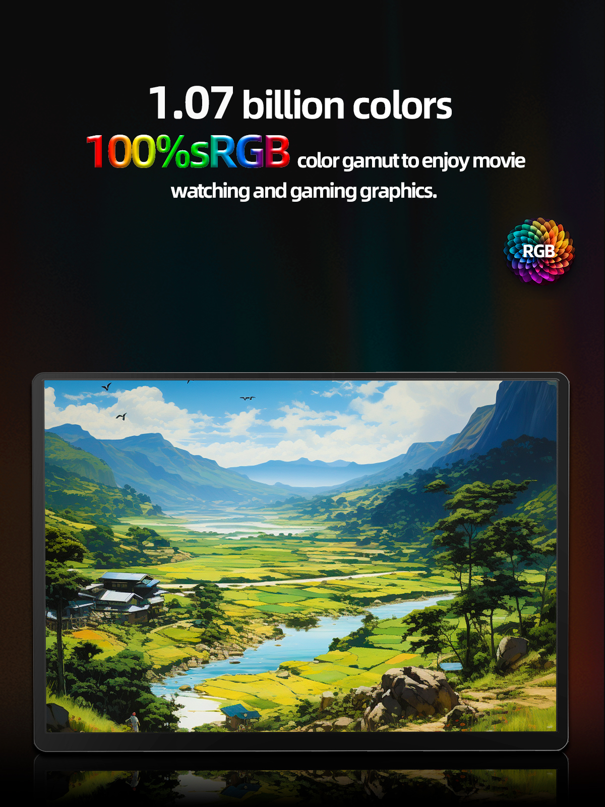 2023 Inovação Tela portátil de 60 Hz com profundidade de cores de 8 bits, a transição de cores será mais suave e delicada, as cores serão mais ricas e brilhantes, e as cores verdadeiras dos objetos podem ser restauradas com mais precisão. Quanto maior o número de bits, mais uniforme será a transição de cores.