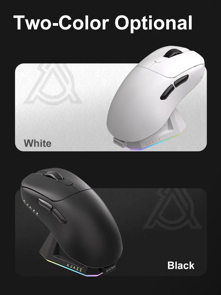 Mouse AJAZZ AJ179 PRO, PAW3395, sem fio leve, Mouse ergonômico Macro Gaming, Base de carregamento magnética